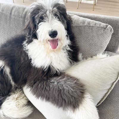 Sheepadoodles have hair and unlike fur, hair grows and grows and grows! You will want to contact a reputable groomer who has experience with doodles. The first 9 months to a year their coats are pretty manageable with some brushing, but once they get their adult coats the maintenance becomes a little more intense, especially if you love the long flowing hair. You will want to brush and comb daily and find a groomer who can manage all of that beautiful hair. Below are groomers that our families have used and love!